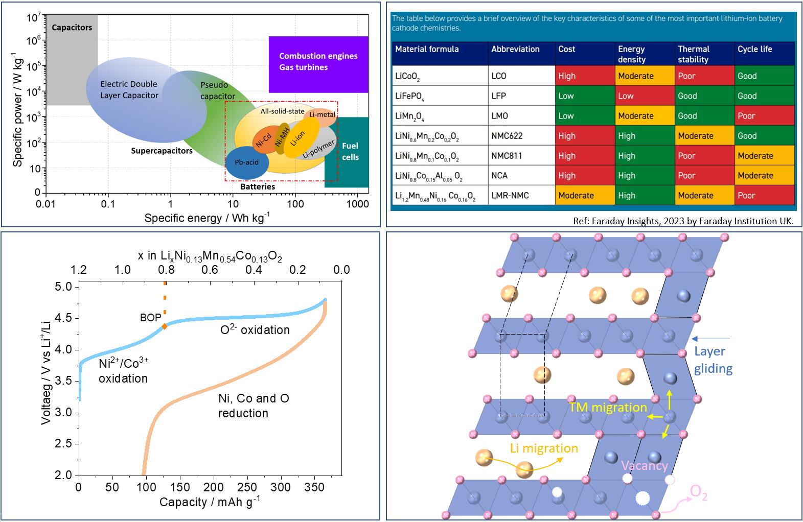 We aim to deliver a fundamental understanding of challenges in current cathode materials and develop new materials for next-generation Li-ion and solid-state batteries. Our current research primarily focuses on anionic-redox systems, which harness the redox reaction of lattice anions for charge storage beyond conventional cationic redox. This includes studies on O-redox metal oxides and S-redox metal sulfides, mainly in layered structures. Concurrently, we are also active in research on high-nickel oxide, high-voltage manganese oxide, and polyanion systems.